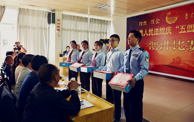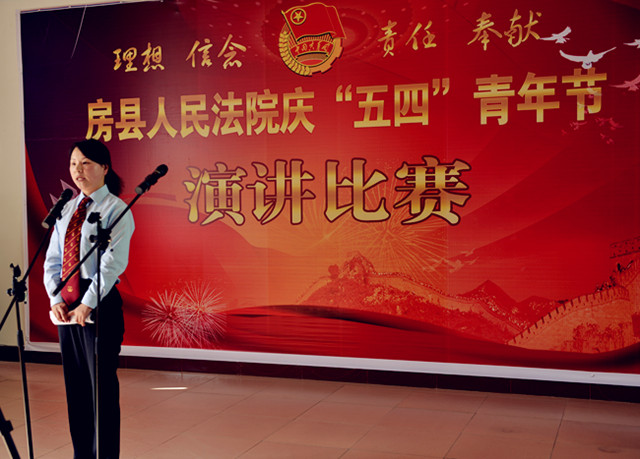 为纪念“五四”运动94周年,进一步激发青年干警的激情与活力,激发全院干警的凝聚力和战斗力。4月27日下午,房县法院在五楼会议室举办了以“理想、信念、责任、奉献”为主题的演讲比赛。党组书记、院长肖玉玲及在家的领导班子成员出席了此次演讲比赛并担任评委,同时邀请了政法委副书记郑群谟、宣传部副部长、精神文明办主任赵礼江、团县委书记罗琼担任评委。来自法院综合部门、业务庭室、基层法庭的21名选手参加了比赛。