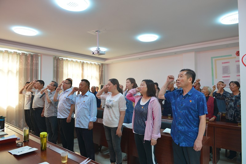 活动中,房县法院办公室支部及八里坪村支部的党员们面对鲜红的党旗,高举右手庄重宣誓:“我志愿加入中国共产党......随时准备为党和人民牺牲一切,永不叛党!”庄严肃穆的宣誓活动,使每一位党员再一次接受心灵的洗礼。主题党日规定动作后,两个支部的党员们共同学习了习近平总书记在江西考察和推动中部地区崛起工作座谈会上的谈话精神、张富清同志先进事迹及《中国共产党党员教育管理工作条例》等内容。