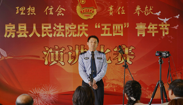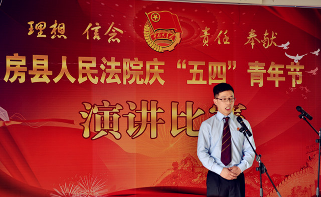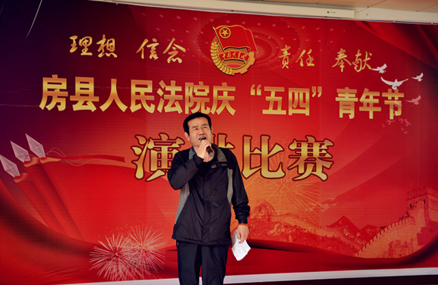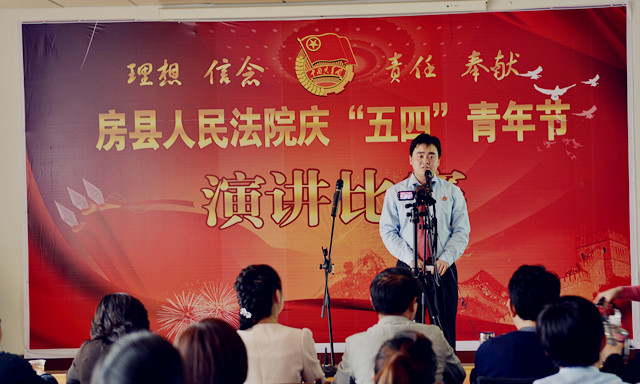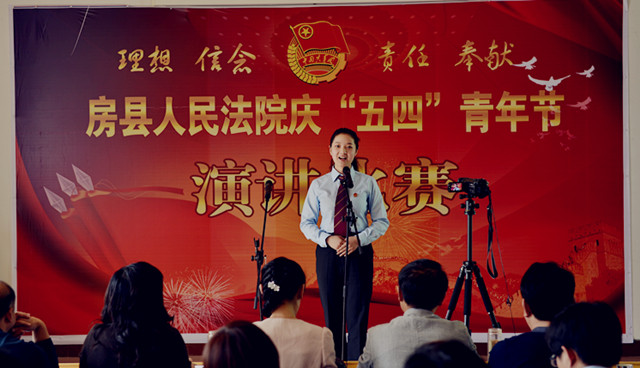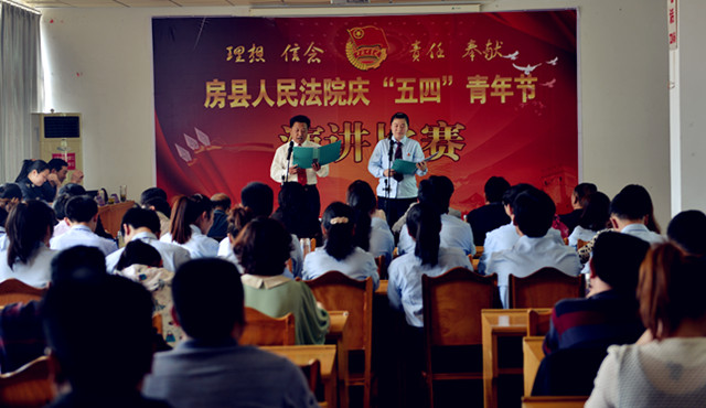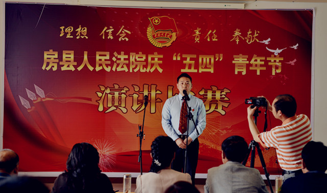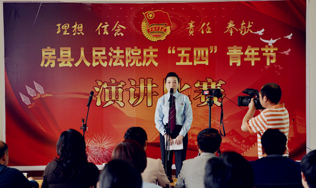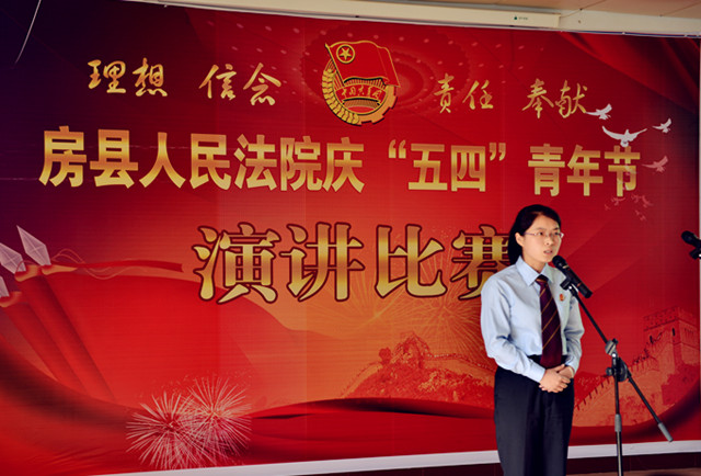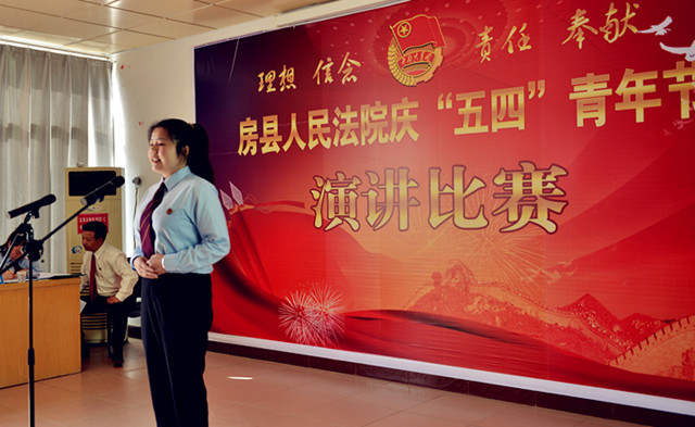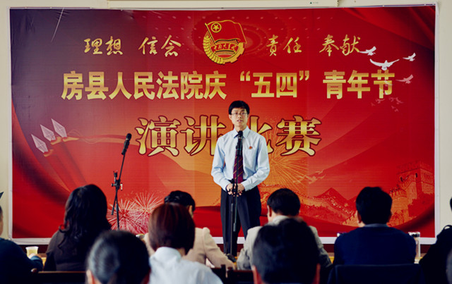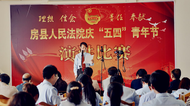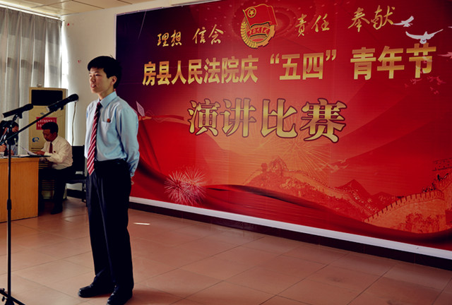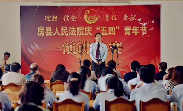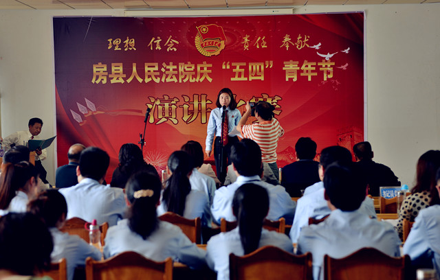 为纪念“五四”运动94周年,进一步激发青年干警的激情与活力,激发全院干警的凝聚力和战斗力。4月27日下午,房县法院在五楼会议室举办了以“理想、信念、责任、奉献”为主题的演讲比赛。党组书记、院长肖玉玲及在家的领导班子成员出席了此次演讲比赛并担任评委,同时邀请了政法委副书记郑群谟、宣传部副部长、精神文明办主任赵礼江、团县委书记罗琼担任评委。来自法院综合部门、业务庭室、基层法庭的21名选手参加了比赛。
