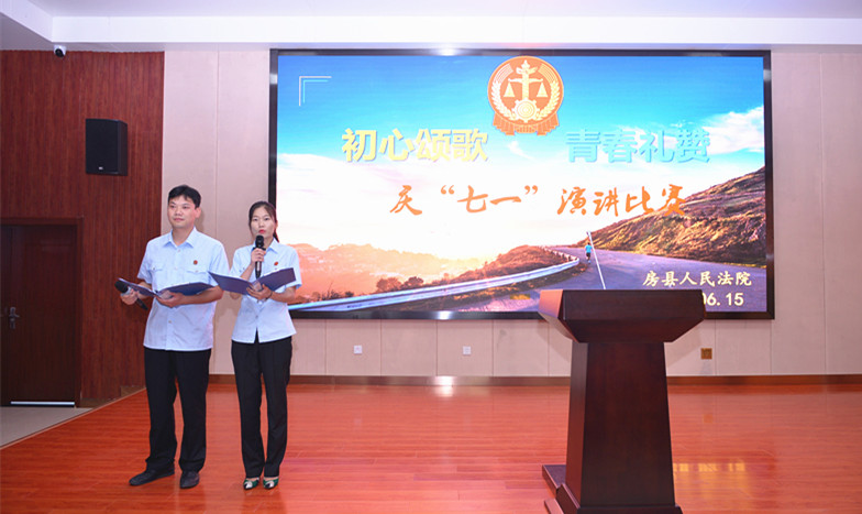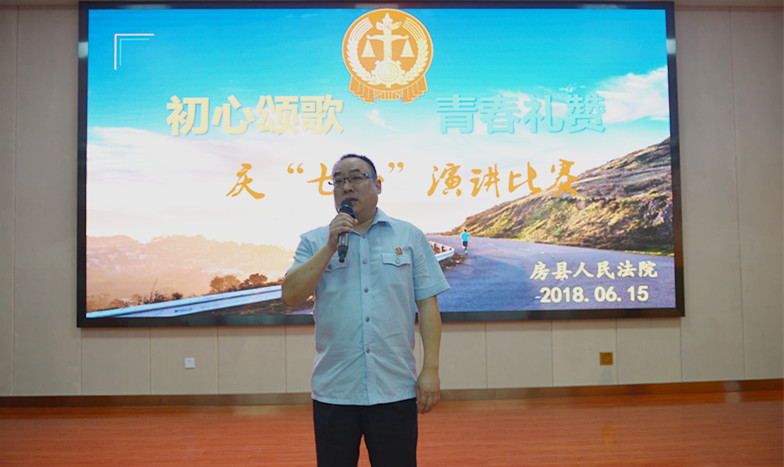 为庆祝中国共产党诞生97周年,展现法院干警积极进取、忠诚担当的精神风貌,6月15日上午,房县法院组织开展庆“七一”系列活动之“初心颂歌,青春礼赞 ”主题演讲比赛。